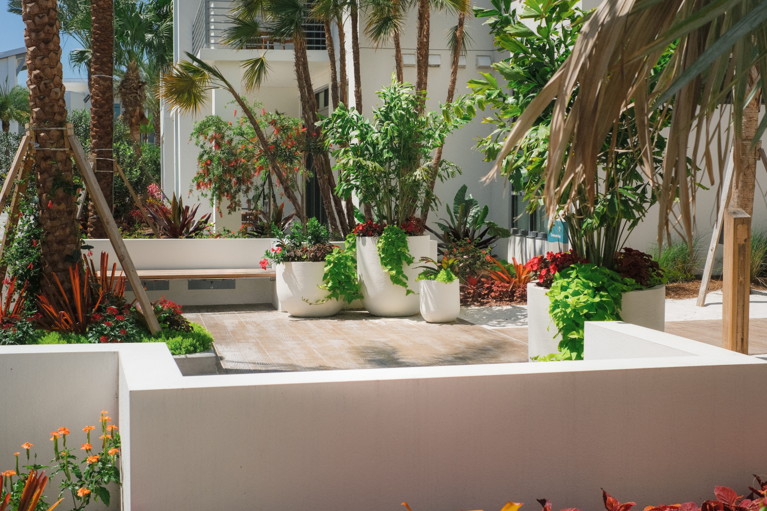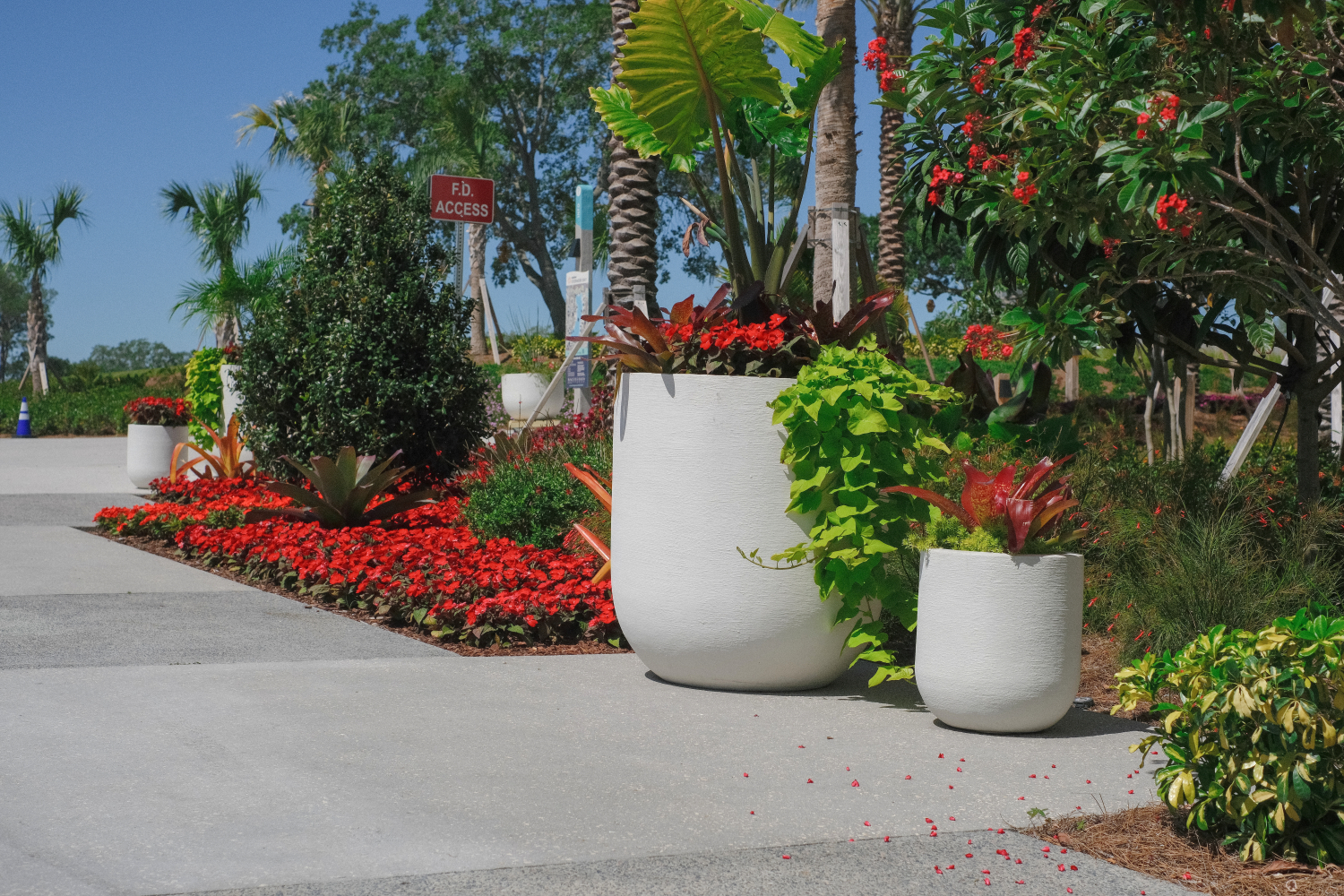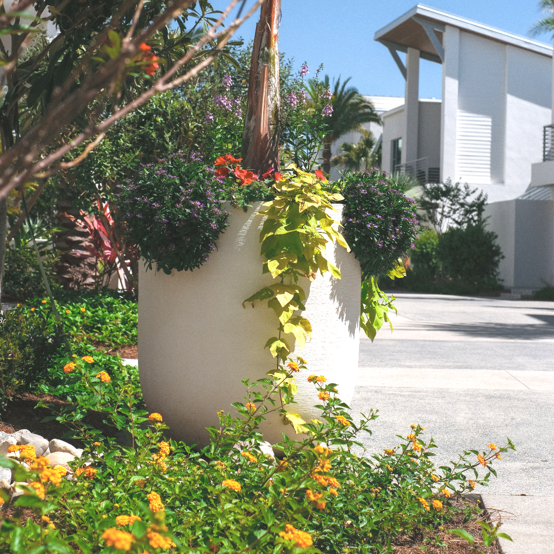 Across the lobby, terraces, and primary circulation zones, Stone Yard’s Barro Planters underscore the resort’s relaxed–luxury aesthetic. With a clean half-oval silhouette and organic, hand-finished texture, Barro brings sculptural warmth in durable GFRC/Fiberstone constructions - offered in multiple sizes (including large-scale formats) and finish options to suit high-traffic hospitality environments.