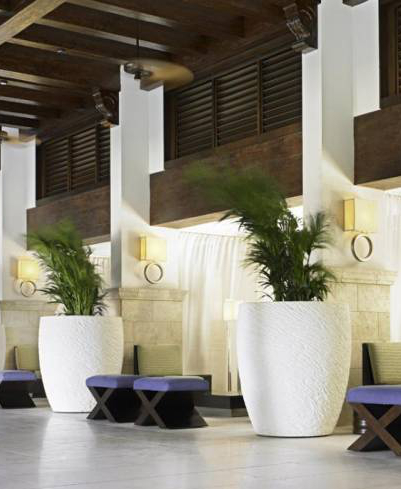 For the resort’s refreshed grand lobby and garden-adjacent spaces, Stone Yard, Inc. supplied our distinguished Roman Pond Planters—their classical proportions and chiseled spiral textures creating a graceful transition between the interior and the lush outdoors.