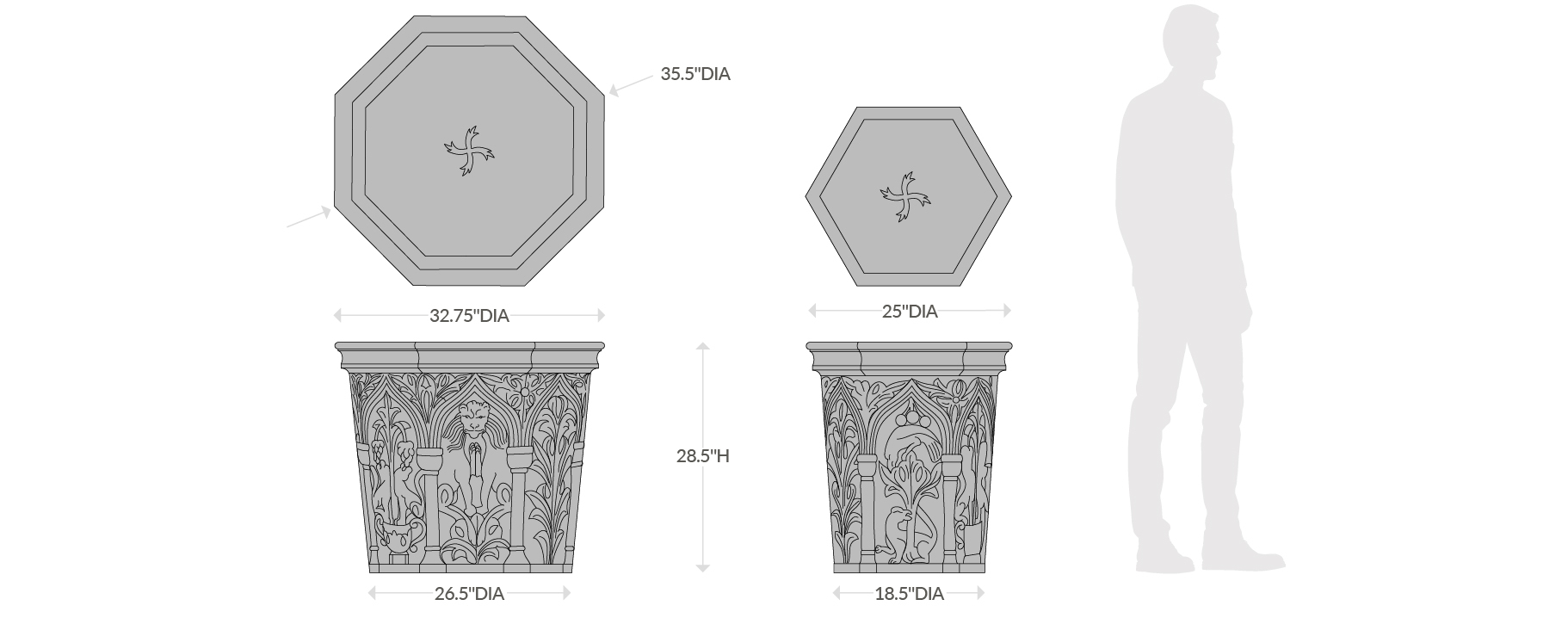 These octagonal cast stone pedestal table bases are true works of art with intricately carved detail. Add elegance to Old World, traditional, or eclectic decor.