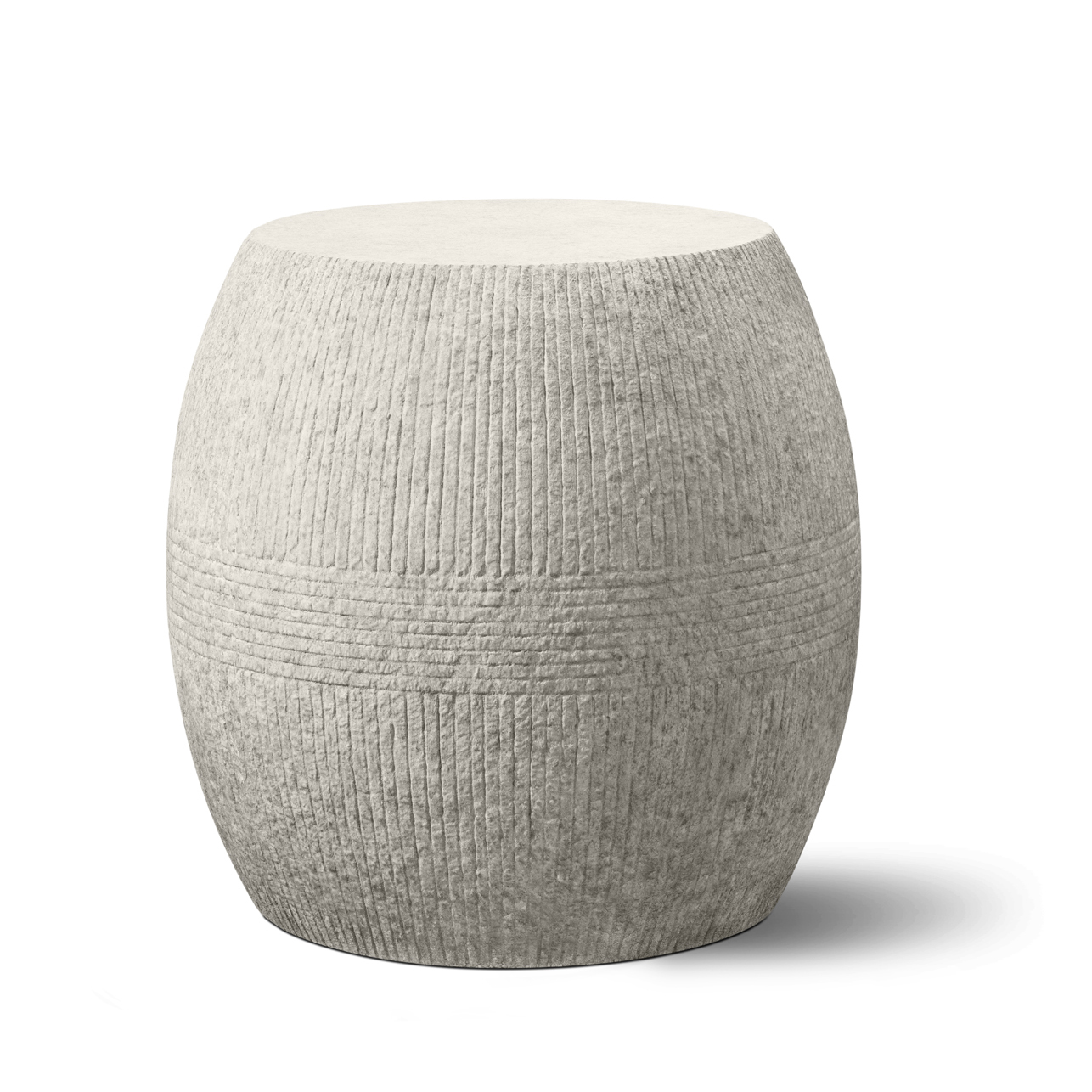 The Zaragoza Barrel Stool and Side Table, crafted from cast stone, is a versatile addition to any outdoor space. Whether used as a stool in the garden or an accent table, it adds a touch of Spanish charm with its textured design reminiscent of old Spanish homes. Made to order for a personalized touch.